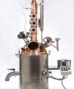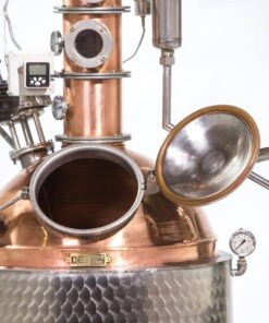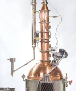 De top van de Premium Line is onze distilleerketel met reflux kolom waarbij in 1 stook een hoog alcohol percentage verkregen wordt. De ketels kunnen worden verwarmd met behulp van hout, elektra (12kW) en verschillende soorten gas (30kW) en een combinatie ervan.