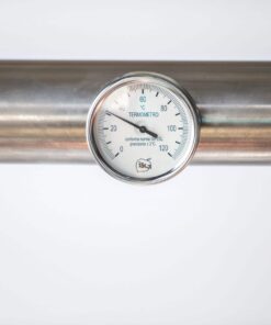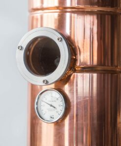 The PREMIUM WBC still has a net capacity of 500 L, made from 99.99 % pure electrolytic copper. The furnace and water bath is made from stainless steel designed for solid fuel heating, with an operating pressure 0.5 Bar and temperature of 104-120 °C. In order to insure energy efficiency, the furnace has a firebrick insulation. An optional gas heating system or electric system with ED-PM-termopolimer insulation is available. The cooler has a constant water flow system for maximum efficiency made from acid-water resistant stainless steel and functions according to industrial standards.