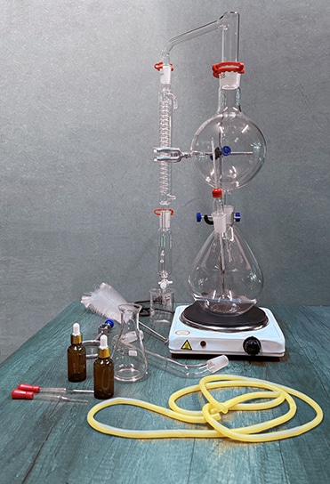 Deze set is erg handig om olie te verkrijgen van bijvoorbeeld planten of onderdelen hiervan en tevens zeer geschikt voor proefdistillatie en concentraten. Wij leveren deze set inclusief fragmentatiekolom van 30 cm hoogte. Elektrische verwarming, koeling, slangen, thermometer en standaard. Deze set is gebruiksklaar. Grotere fragmentatiekolommen zijn op aanvraag verkrijgbaar.
